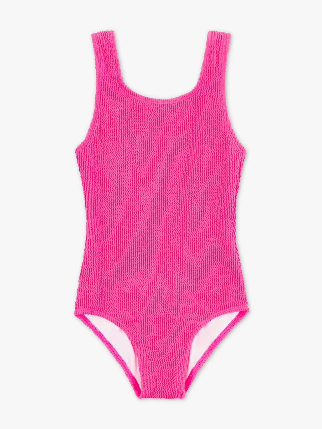 Bold and classic, this textured one-piece swimsuit has a low-scoop back in a crinkle fabric that's comfortable for all-day wear. This stretchy one-piece swimsuit comes in gorgeous colors and is made from our special 4-way stretch crinkle-textured fabric. This classic silhouette is consciously crafted to fit and flatter different body types and sizes.
