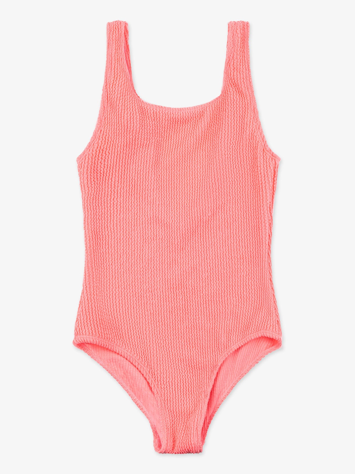 Bold and classic, this textured one-piece swimsuit has a low-scoop back in a crinkle fabric that's comfortable for all-day wear.