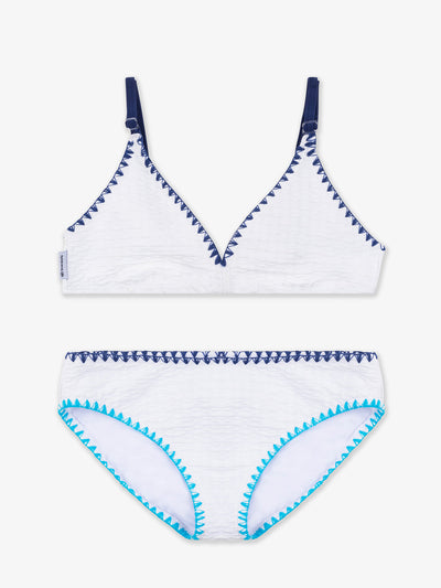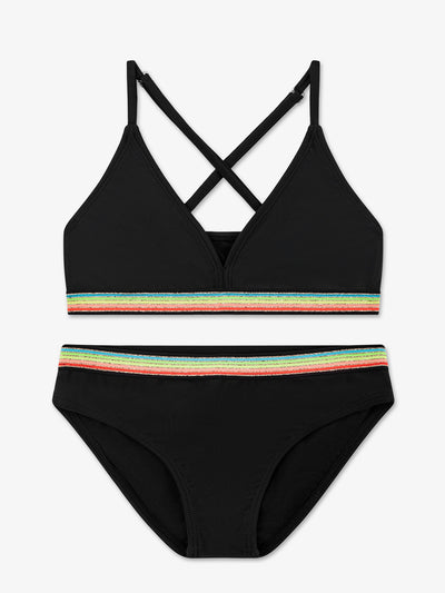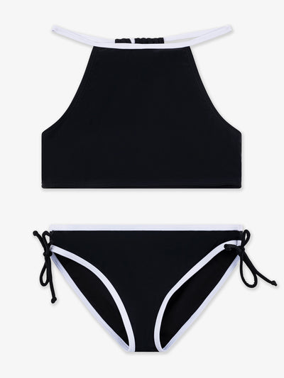 Show up in the water and on the beach in our stylish two piece swimsuits and bikinis for young girls. From velour and bright color blocking, to intricate details and unique prints, each piece is one of a kind. They also all feature UPF 50+ protection from harmful UV rays, and a comfortable fabric with quick drying time. Our bikinis are available for big kids, tweens or little girls, in sizes 2T through 16 with details for every size from adjustable straps and complete lining for coverage to removable cups for added comfort. Whether its our ruffle bikini or basic bandeau style, they're built for carefree fun and comfort. Looking this cute on the beach has never been so easy.