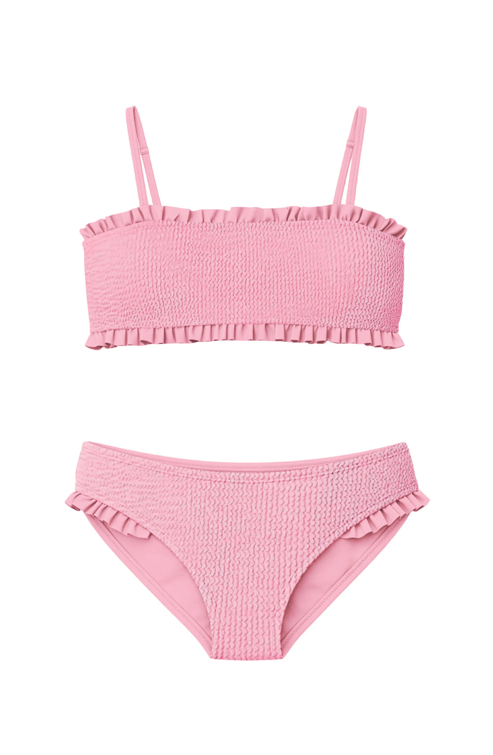 Show up in the water and on the beach in our stylish two piece swimsuits and bikinis for young girls. From velour and bright color blocking, to intricate details and unique prints, each piece is one of a kind. They also all feature UPF 50+ protection from harmful UV rays, and a comfortable fabric with quick drying time. Our bikinis are available for big kids, tweens or little girls, in sizes 2T through 16 with details for every size from adjustable straps and complete lining for coverage to removable cups for added comfort. Whether its our ruffle bikini or basic bandeau style, they're built for carefree fun and comfort. Looking this cute on the beach has never been so easy.