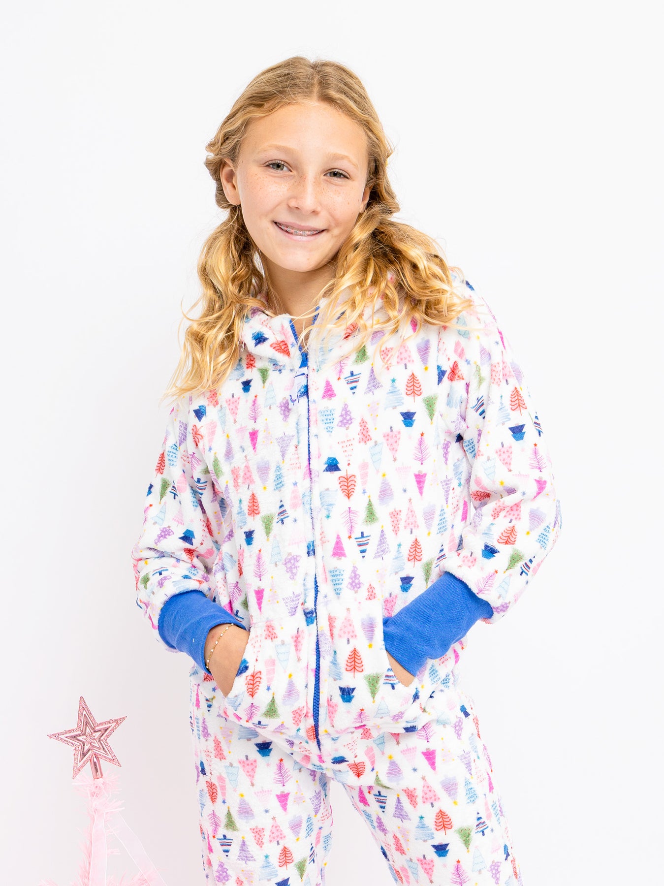 Prepare to live in our new plush onesies.Ā Our holiday Christmas girls onesie features a roomy hood, long cuffs with thumbholes and front pocket for essentials.Ā Made to lounge in, traveling to and from dance class or just relaxing. Its soft, cozy fabric guarantees comfort and feels like a giant hug.Ā