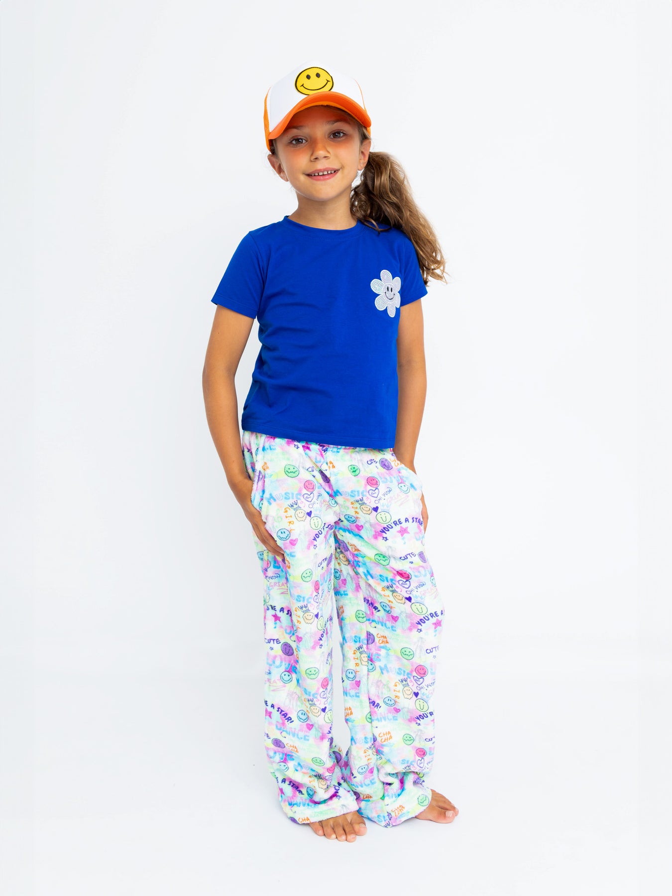 Indulge in ultimate comfort with our silky soft Let's Dance loungewear plush pants, designed for the fun-loving girl. Whether you're lounging at home, traveling, chilling with friends, or camping out by the fire, these girls' pajama pants ensure you do it all in style. The fun printed pant showcases playful smiley faces set against a vibrant background, adding a cheerful touch to your loungewear collection.