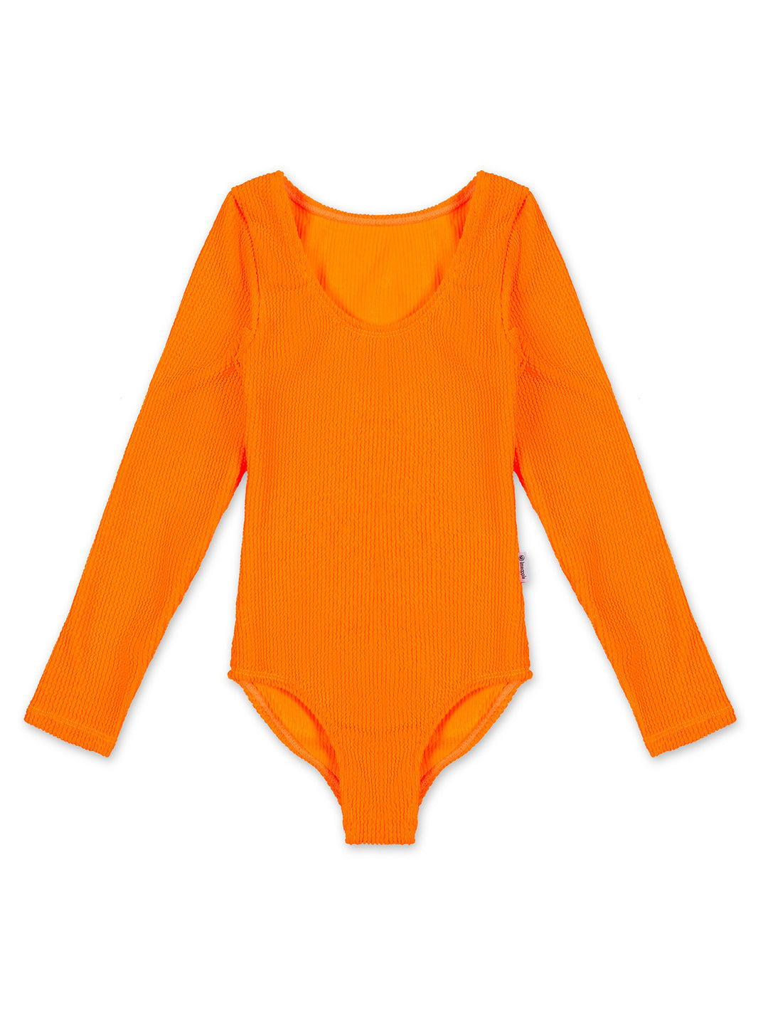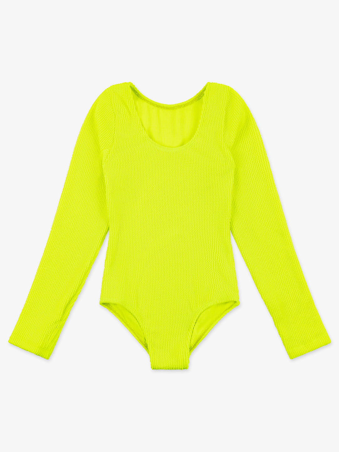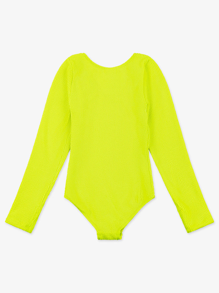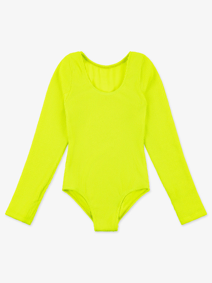 Sporty and effortlessly cool, this stunning one-piece swimsuit is featured in a long-sleeve silhouette, crinkle fabric and a bold color that's made for surf.