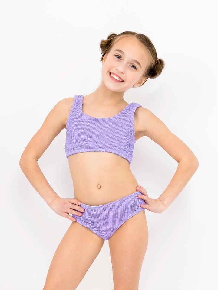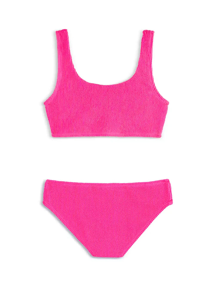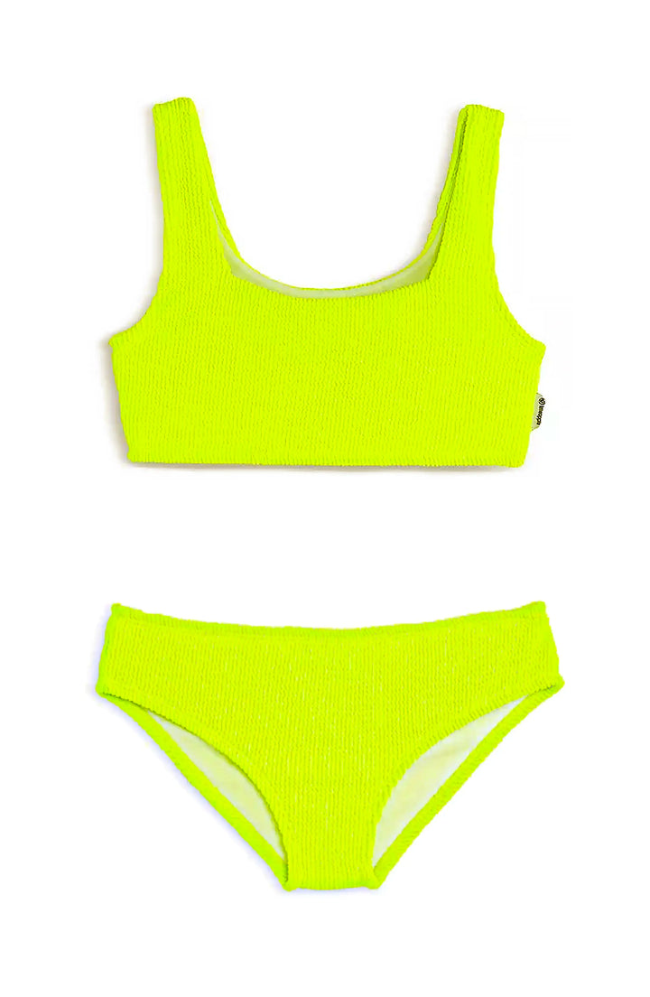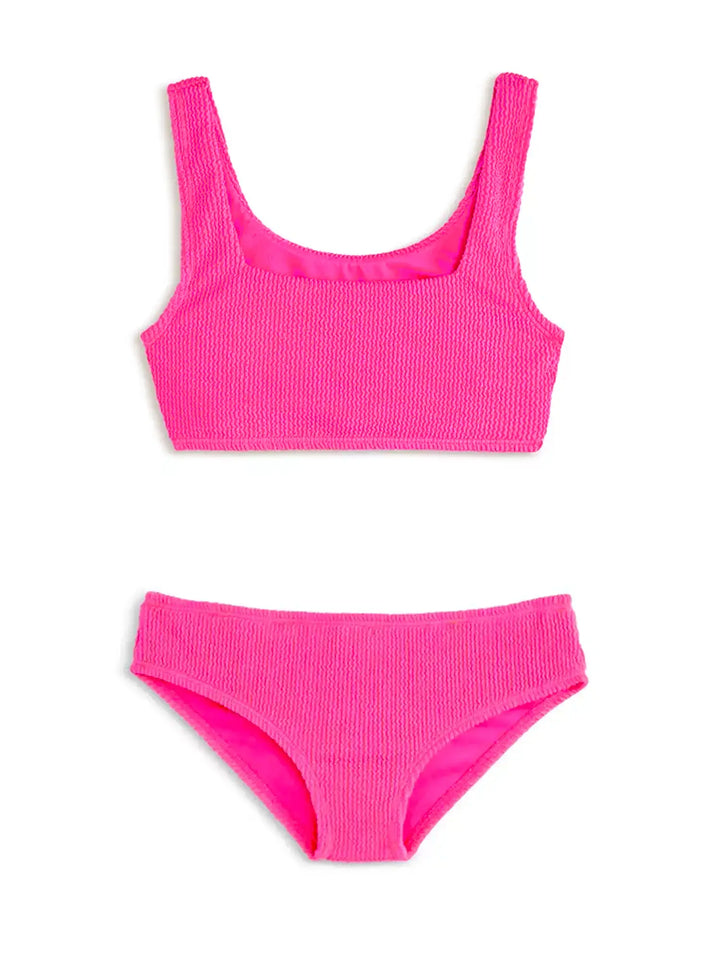 Introducing the Fay two-piece swimsuit, an essential addition to any tween girl's summer wardrobe. This classic bikini set features a stylish square neckline and thick straps, designed for comfort and support during all your summer activities. Crafted from our stretchy crinkle fabric, this tween bikini is tailored to fit and flatter various body types, ensuring your child feels confident and carefree by the pool or at the beach.